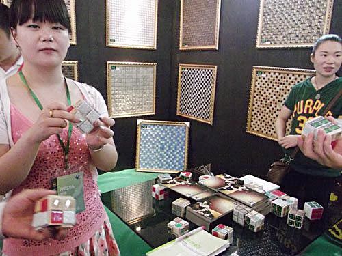 商家將馬賽克做成魔方,既新穎又方便客商觀看。楊洪攝
