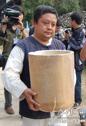 專家現(xiàn)場點評古窯燒制出的陶瓷。