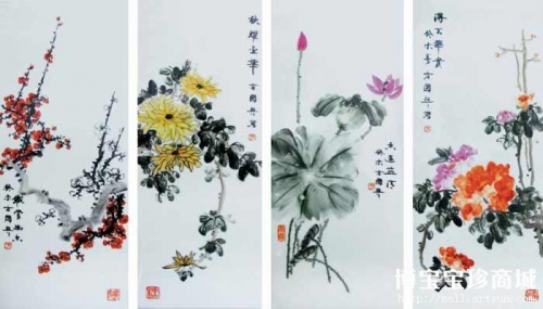 方國興《瓷畫-春夏秋冬釉上四屏瓷板》 (圖片來源:博寶寶珍商城)