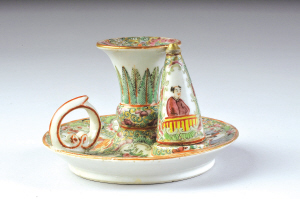 廣彩開窗人物花鳥紋燭臺。光緒年間