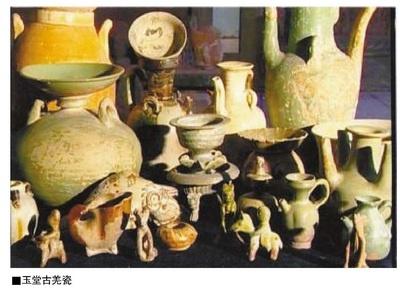 都江堰沿山一帶有漢代崇義的“環(huán)山窯址”、南朝至唐代天馬山的“六馬槽窯址”、唐代大樂鄉(xiāng)蒲村的“高碑堡窯址”、宋代金鳳鄉(xiāng)的“瓦崗壩窯址”,這些充分說明都江堰市以趙公山下的鳳歧、橫山羌瓷窯址為中心的古窯群,構筑了我國西部的“陶瓷之都”,成為成都陶瓷業(yè)發(fā)展的中心,反映了當時該地區(qū)陶瓷業(yè)的興旺發(fā)達。玉堂古羌陶瓷窯址文化不但是中華民族,更是人類文化史上的一塊珍寶。經(jīng)成都市文化局推薦,1985年8月,原灌縣人民政府豎立了“成都市文物保護單位玉堂窯址”的保護志碑。2002年該窯址又被批準為省級文物保護單位。