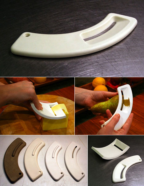 這是一款剛剛獲得2008 Design Directions設(shè)計大賽冠軍的一組設(shè)計。這組設(shè)計由兩個產(chǎn)品組成,一個瓜果削皮器和一個黃油切刀。