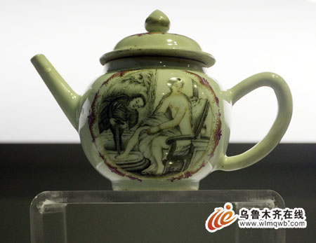 清乾隆年間的廣彩開窗西洋人物圖茶壺。