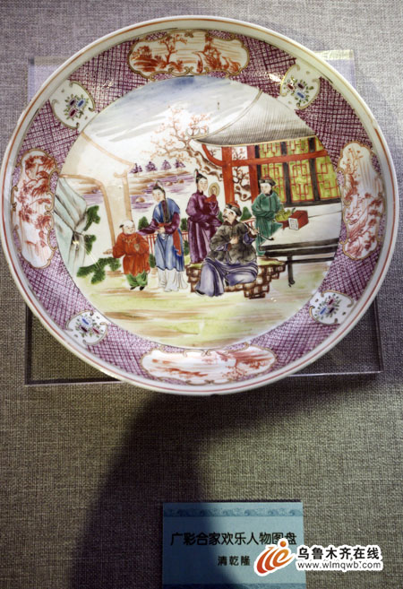 清乾隆年間的廣彩合家歡樂人物圖盤。