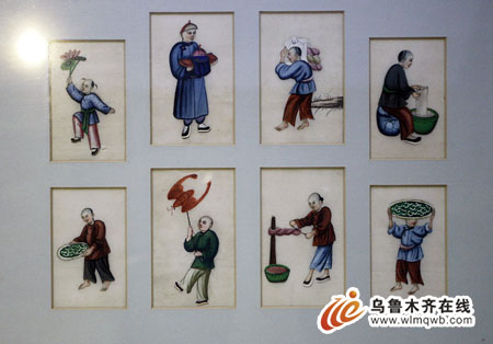 以上一組圖為十九世紀(jì)的養(yǎng)蠶人物圖通草畫。