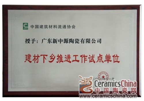新中源陶瓷獲得首批建材下鄉(xiāng)試點單位