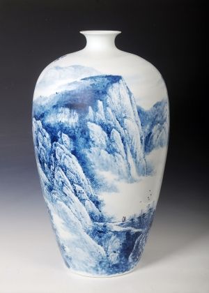 胡達(dá)民自幼酷愛繪畫,對(duì)那晶瑩剔透的白色世界有著特別的鐘愛,擅長釉上新彩、粉彩、釉下青花山水。作品構(gòu)圖新穎多變、疏密結(jié)合、取材廣泛,枯藤老樹、小橋流水、亭臺(tái)茅舍、江南秀色、水鄉(xiāng)、雪景……或工或?qū),工筆中但見點(diǎn)點(diǎn)線線,細(xì)膩而不繁瑣、清爽自然;寫意中線面結(jié)合,釉下青花有著宣紙上的濕潤與飛白筆觸,也有彩染的虛實(shí)效果。其山水畫作品畫中有詩,常以枯藤老樹、千峰競(jìng)秀、云霧橫流、山勢(shì)磅礴、吞吐萬象的全景表達(dá)出一種廣闊的意境和作者豐富的情感世界。作品深邃的靜美和氣勢(shì)恢宏的景觀,常給人一種強(qiáng)悍的感染力和無限的遐想。