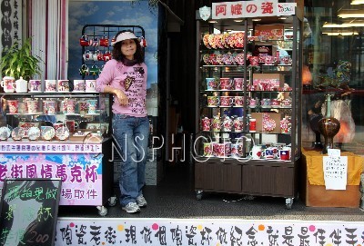 臺灣制陶業(yè)重地所在的臺北縣鶯歌鎮(zhèn)陶瓷老街,經(jīng)重新規(guī)劃后,而今已成為吸引各方來客的休閑好去處。數(shù)百米老街上,鱗次櫛比地開著百余家陶瓷店鋪,和眾多陶藝工作室、老作坊、廠家直營門市、批發(fā)店等,引人步入密集的陶瓷世界。圖為陶瓷店鋪的阿嬤在店門前以“伴手禮”概念招徠顧客。