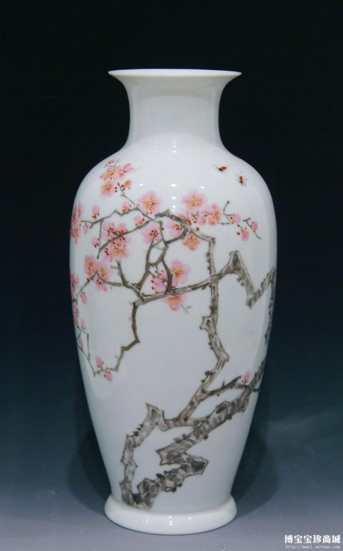 瓷藝作為中華傳統(tǒng)藝術(shù)的瑰寶不僅外觀上極具東方典雅氣質(zhì),內(nèi)涵上更是飽含著深切的祝愿。我們在欣賞一款瓷器精品時不僅被它優(yōu)雅的外觀所吸引,驚嘆于瓷藝大師精湛的技藝更是為其中的美好寓意所感染。這一款收藏于博寶寶珍商城的《梅開五!芬灾袊鴤鹘y(tǒng)的梅花為演繹對象。整個瓶飾圓潤通透,輪廓大方。梅花的點綴構(gòu)成了畫面的生機之感,仿佛嗅到春的氣息,感受到一種生命力的旺盛。劉平在表達這一主題時,緊扣粉彩的自身演繹之法,以溫潤的色彩表達主題,刻畫細致入微,線條柔美賦予變化。在完美呈現(xiàn)粉彩的多姿魅力的同時,更是將富貴安康的美好寓意表達。是收藏精品更是饋贈的好禮。