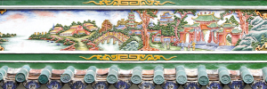 “公園春曉”灰塑位于祖廟的西側(cè)外圍墻上,是1956年佛山灰塑藝人布志軍的作品。