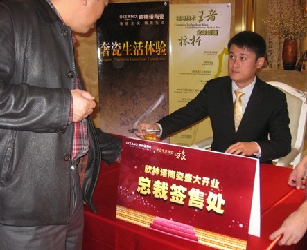 2010年11月20日,“中國(guó)古都,天下大同”氣溫返暖,陽(yáng)光和煦。在這北國(guó)寒冬難得好日子,奢瓷生活體驗(yàn)之旅——歐神諾陶瓷大同鉑金館盛大開(kāi)業(yè)暨總裁簽售如期舉行。佛山歐神諾股份有限公司華北大區(qū)經(jīng)理刑野先生、歐神諾陶瓷大同總代理柴桂珍女士、大同金牛精品裝飾城市場(chǎng)領(lǐng)導(dǎo)及將近百名社會(huì)名流嘉賓出席了大同鉑金館的開(kāi)業(yè)盛典,大同電視臺(tái)等主流媒體競(jìng)相報(bào)道了這一開(kāi)業(yè)盛況!