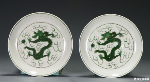 【博寶點(diǎn)評(píng)】博寶寶珍商城中展示的一對(duì)清代道光年間的綠彩云龍紋盤可以算是官窯瓷器的代表作品了,它工藝細(xì)膩,胎體均勻,釉面晶瑩潤(rùn)澤。上面飾有龍紋圖案,這是官窯的經(jīng)典傳統(tǒng)題材。清代官窯磁盤能成對(duì)出現(xiàn)并保存如此完好,實(shí)屬不易,是非常值得珍藏的。
