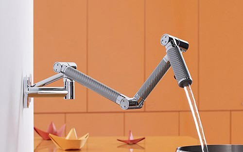 科勒 的這款壁掛式廚房龍頭在功能上跟上一款異曲同工,靈活彎曲的造型,便于廚房各個(gè)角度的用水。而且這款還是掛壁式的龍頭,更加具有創(chuàng)意。