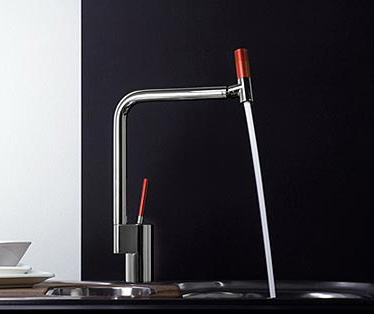 在噴頭上增加了紅色的元素,讓這款龍頭看上去更加時尚。為這款簡約設(shè)計的龍頭添加了美觀的效果,成為廚房的點睛之筆。