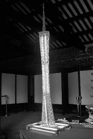 利用廢舊鐵線(絲)、鐵皮,經(jīng)扭曲、裁割、粘合成的《廣州塔》,高2.1米,則表達(dá)了民間藝人對(duì)廣州亞運(yùn)會(huì)的關(guān)注和熱愛(ài)。
