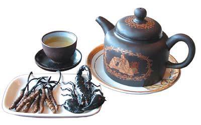 功夫湯采用多款名貴材料作為功夫湯的主料,低脂低膽固醇,有多種調理作用,而且每種湯都用不同的紫砂壺區(qū)別,甚為豪華。冬蟲草功夫湯按客人喜好選擇西藏名貴冬蟲草份量(5條、10條、15條),與水鴨或瘦肉合燉,達到調理作用。至尊蟲草皇蝎子功夫湯以瘦肉、蝎子和冬蟲草皇合燉,有解毒散結的功效。鮮靈芝燉瘦肉蛋白質豐富,有清補之功效。