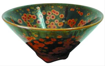 鐵紅金圈結晶釉斗笠碗