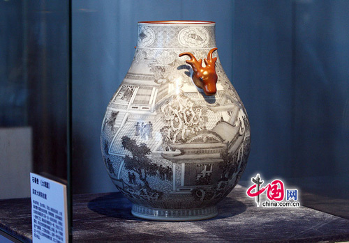 中國(guó)收藏2010十大藝術(shù)陶瓷名品展上的精美作品。大觀園(博夢(mèng)堂 攝影報(bào)道)