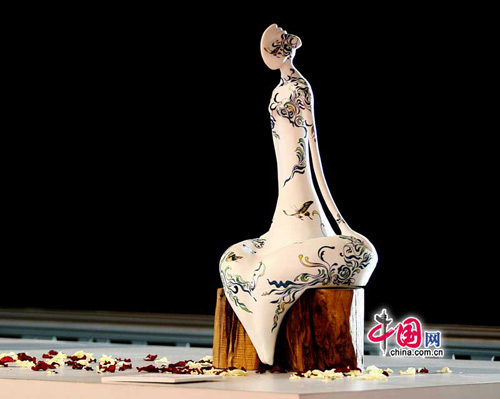 中國(guó)收藏2010十大藝術(shù)陶瓷名品展上的精美作品。滇西老婦(博夢(mèng)堂 攝影報(bào)道)