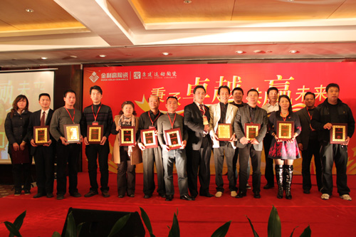 為了答謝廣大經(jīng)銷商朋友對品牌的支持與付出,對在2010年里取得優(yōu)異成績的經(jīng)銷商代表進行表彰,樹立標(biāo)桿榜樣,在晚會上,康建運動陶瓷、金利高陶瓷還同時頒發(fā)了金牌經(jīng)銷商獎及品牌推廣、經(jīng)營管理、銷售渠道、店面形象等各類單項獎,讓獲獎經(jīng)銷商們的辛勞付出得到表彰,也讓經(jīng)銷商們感受到了來自廠家的鼓勵與支持力量。