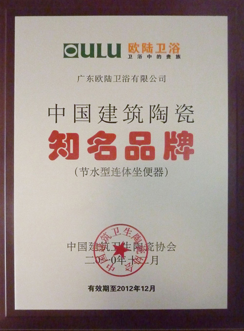 2010年12月1日,中國建筑衛(wèi)生陶瓷協(xié)會第六屆三次理事會暨2010年年會在佛山隆重召開。廣東歐陸衛(wèi)浴有限公司憑借著在智能衛(wèi)浴領(lǐng)域的技術(shù)優(yōu)勢及普通衛(wèi)生陶瓷產(chǎn)品在外觀設計、環(huán)保節(jié)水等方面的出色表現(xiàn),連續(xù)兩屆蟬聯(lián)了“中國衛(wèi)生陶瓷行業(yè)知名品牌”稱號。