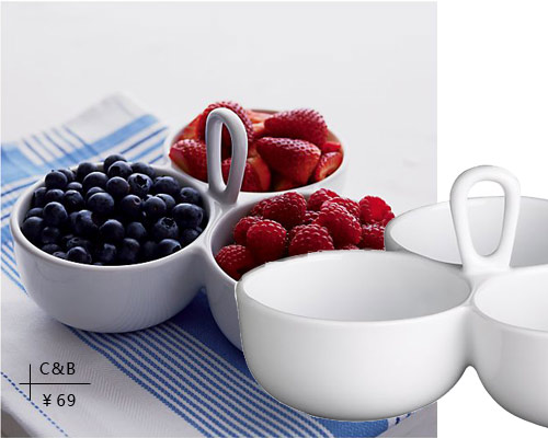 搭配點(diǎn)評(píng):白色三頭小果盤可以用來放置小型的水果、堅(jiān)果或者調(diào)味品。連體的設(shè)計(jì)易于清潔整理。
