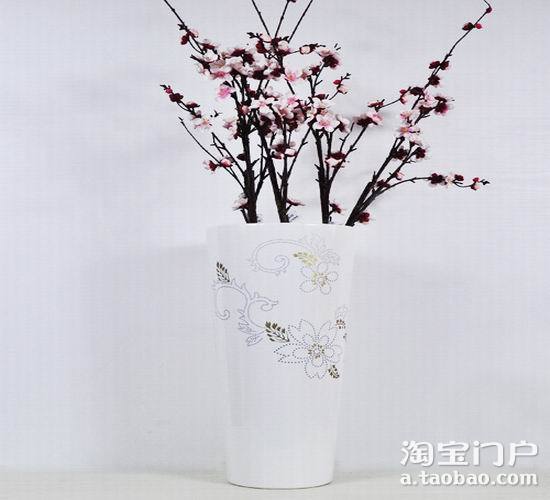 此款落地花瓶瓶口寬闊,外觀挺拔大方、精美典雅,瓶身的貼花花開富貴,“枝條悠悠俏,花兒幽幽香”,意境渺渺,情意深深,是點綴客廳的亮麗風景。