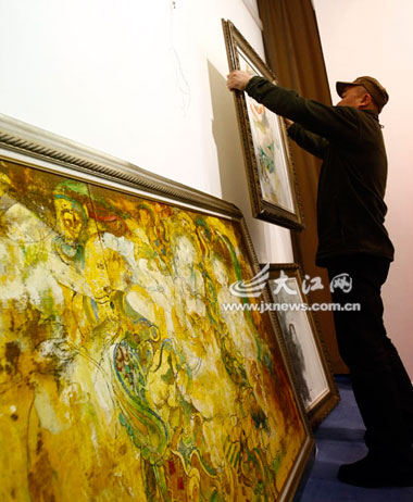 江西籍畫家方衛(wèi)國進(jìn)駐江南藝術(shù)館,2月25日將正式開幕。昨日,30幅方衛(wèi)國瓷面繪畫和布面油畫作品運(yùn)抵藝術(shù)館。除了自己的作品,此次方衛(wèi)國還專程從北京帶來一件曾創(chuàng)吉尼斯紀(jì)錄的最大薄胎碗,碗口寬為1.26米。尤其珍貴的是,蜚聲畫壇的老藝術(shù)家陳醉更在這件創(chuàng)下吉尼斯紀(jì)錄的薄胎碗上親筆繪畫了17個(gè)形態(tài)各異的裸體女子,目前該碗市場(chǎng)價(jià)已達(dá)600萬元人民幣。