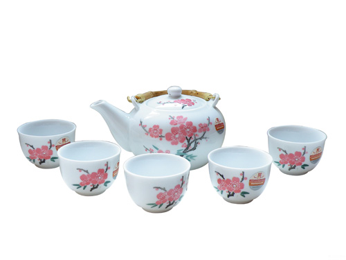 釉下彩錦盒梅竹六頭提梁茶具