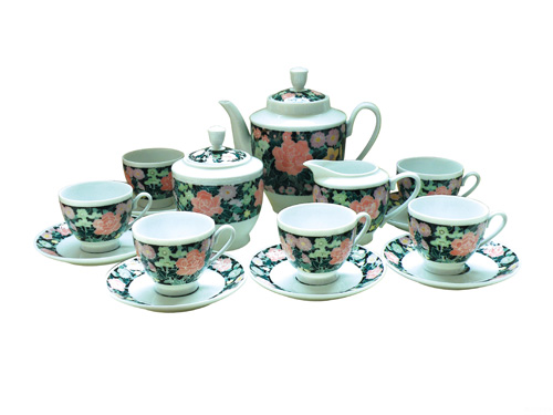 釉下彩黑滿花15頭方肩茶具