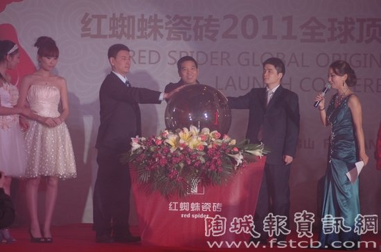 董事長許錦旋(中)與公司高層共同啟動紅蜘蛛瓷磚2011頂級原創(chuàng)新品發(fā)布儀式