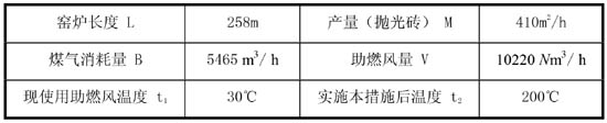 提高助燃風(fēng)溫度可取得的節(jié)燃效益以一條生產(chǎn)拋光磚的燃油輥道窯為例,說明提高助燃風(fēng)溫度的節(jié)燃效益。