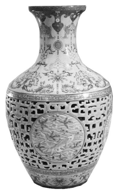 清乾隆粉彩鏤空 “吉慶有余”轉(zhuǎn)心瓶。