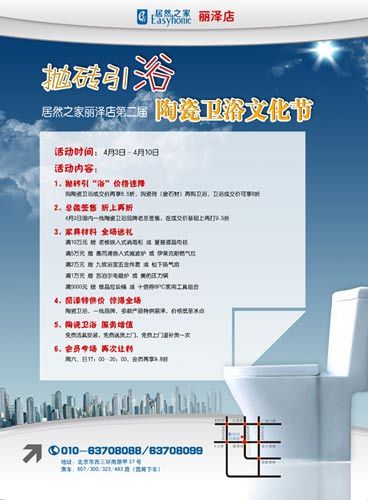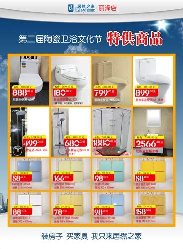 在本次陶瓷衛(wèi)浴文化節(jié)期間,居然之家麗澤店還推出三項(xiàng)免費(fèi)服務(wù):即免費(fèi)潔具安裝、免費(fèi)送貨上門和免費(fèi)上門退補(bǔ)貨一次。居然之家副總裁任成介紹本次陶瓷衛(wèi)浴文化節(jié)時(shí)說(shuō),麗澤店在2010年舉辦了第一屆陶瓷衛(wèi)浴文化節(jié),讓消費(fèi)者在價(jià)格上得到了實(shí)惠。4月3日麗澤店舉辦第二屆陶瓷衛(wèi)浴文化節(jié)的最大的特色是,消費(fèi)者不但能在價(jià)格上得到實(shí)惠,更能在服務(wù)上享受到購(gòu)物無(wú)憂的樂趣。