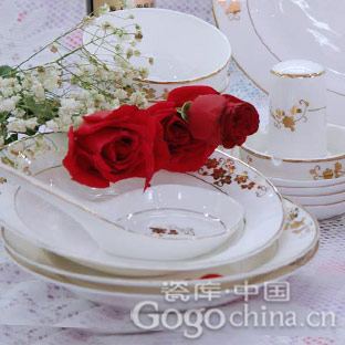 圖:雕金櫻花精品景德鎮(zhèn)餐具
