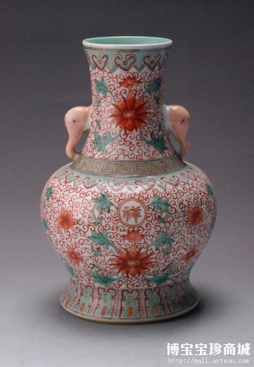 在博寶寶珍商城中欣賞到不少粉彩的精品佳作,據(jù)博寶網(wǎng)銷售人員稱,民國時(shí)期的粉彩具有極佳的市場(chǎng)地位,明麗的風(fēng)格深受藏友喜愛。這款“民國粉彩描金纏枝蓮吉祥如意耳尊”的民國粉彩瓷器保存較為完整,描摹方面更顯絕倫技藝,可謂是瓷畫合體的經(jīng)典之作。傳統(tǒng)的尊式造型,典雅精致;以粉色花飾為底,紅綠圖案搭配相得益彰,獨(dú)具粉潤(rùn)之氣更是可愛之極,古典意蘊(yùn)十足,又不失時(shí)尚感,是難得一見的收藏佳作,宛若小家碧玉般亭亭玉立,光彩奪目。每一個(gè)細(xì)節(jié)處都展示著絕妙的描金工藝,工筆間顯示出精美絕倫的繪制工藝。