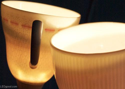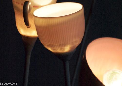 一直很想收集各種漂亮的杯子,玻璃杯,茶杯,酒杯。如果在杯中再加入一些光,那將會是什么樣子。LED燈光之家?guī)磉@款杯子燈Teelicht aka Tee Lights,由設(shè)計師Louisa Kber獨特設(shè)計。每一個茶杯都變成一個燈杯,充分展現(xiàn)陶瓷燈的透光效果,盛滿光的杯子,讓人更加有家的感覺。立在細(xì)細(xì)燈桿上也像特別的郁金香,盛開在金色的光芒中。