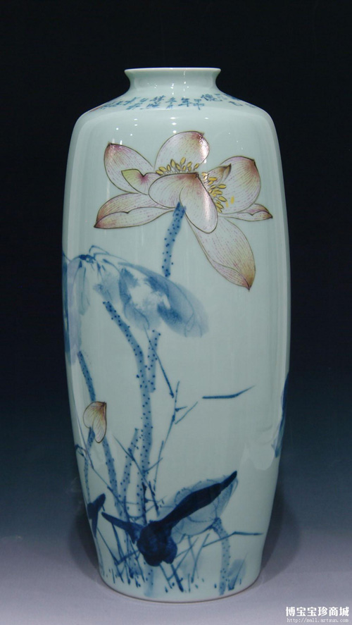 秦勝照青花斗彩《荷花》瓶