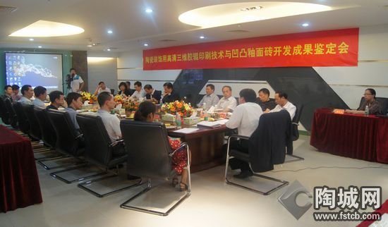 圖為宏宇集團高清三維膠輥印刷技術與凹凸釉面磚科技成果鑒定會現(xiàn)場 袁國強 攝