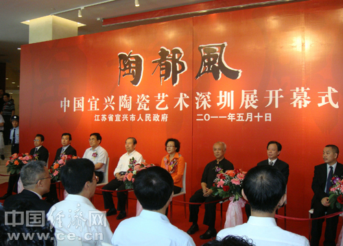 2011年5月10日,由宜興市政府主辦的“陶都風(fēng)――中國宜興陶瓷藝術(shù)深圳展”在深圳關(guān)山月美術(shù)館開幕, 250多件(套)紫砂、均陶、青瓷、精陶和美彩陶,以其獨特的魅力展現(xiàn)了宜興陶都的風(fēng)采。