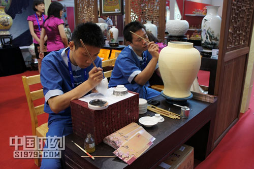 在第七屆文博會(huì)非物質(zhì)文化館,景德鎮(zhèn)陶瓷展示區(qū)不但有制作精湛的瓷器欣賞,還有工作人員進(jìn)行現(xiàn)場(chǎng)表演。