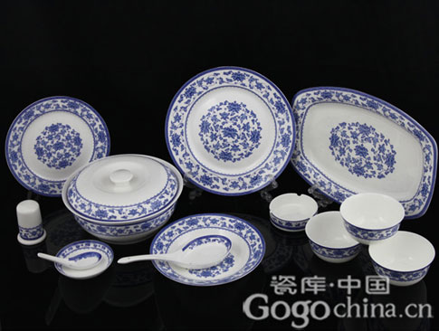 圖:青花釉中彩纏枝蓮紋高檔餐具