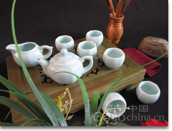 圖:龍泉粉青瓷八角白胎功夫茶具