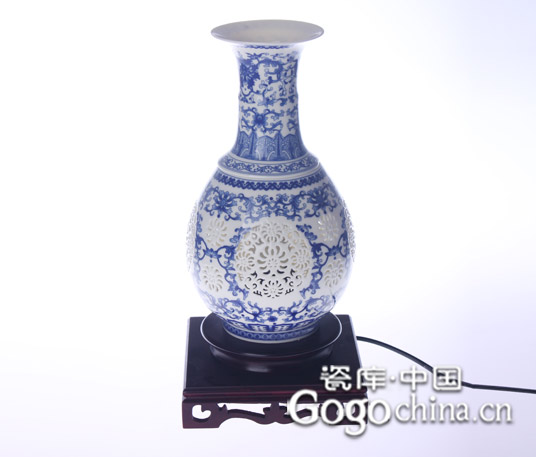 圖:景德鎮(zhèn)鏤空青花陶瓷臺燈