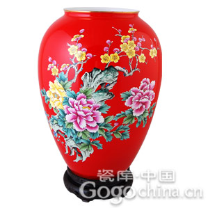 圖:中國(guó)紅瓷 精品手繪國(guó)色天香蓮子缸