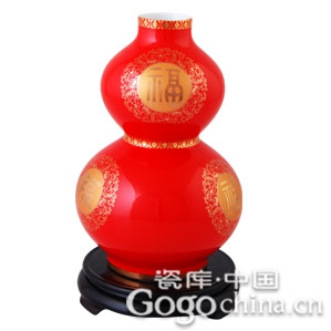 圖:中國(guó)紅瓷金五福葫蘆對(duì)瓶