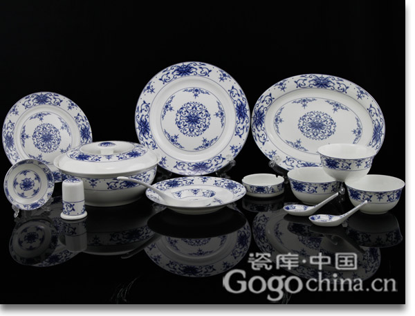 圖:會(huì)議禮品·吉祥相伴景德鎮(zhèn)青花釉中彩骨瓷56頭餐具碗盤(pán)