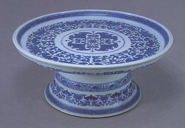 圖:青花纏枝寶相花托蝠紋高足盤(pán)