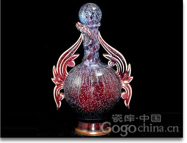 傳統(tǒng)鈞瓷的色彩達(dá)到了無與倫比的豐富多彩,有些窯變不僅巧奪天工,甚至所變色彩是什么名字都難以厘定,更不用說近期燒制的《鳳凰涅槃》、《中秋如意尊》、《奧運(yùn)意象壺》等。