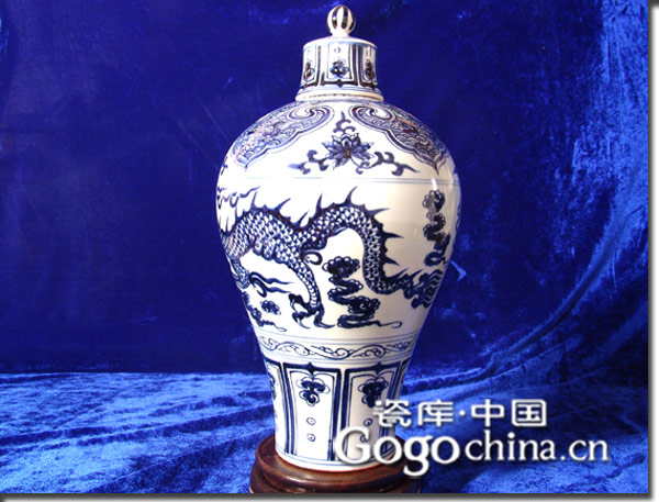 圖:仿元青花三爪龍紋戴蓋梅瓶
